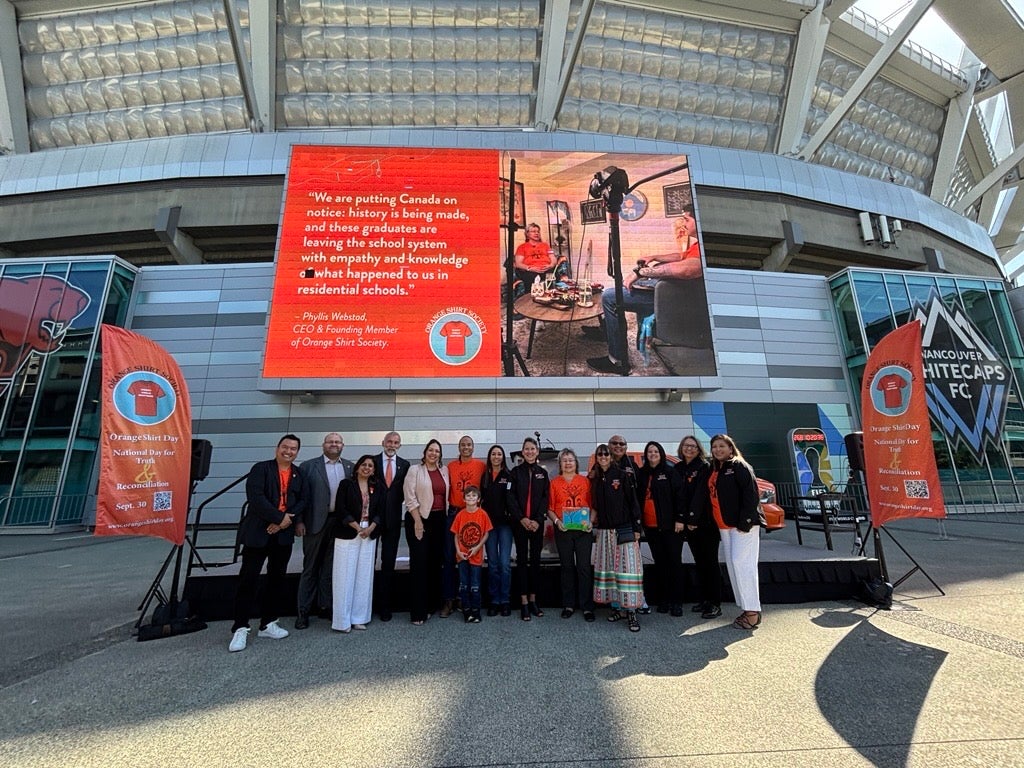 BC Place Terry Fox Plaza, Vancouver – Unceded Territories of Musqueam Squamish & Tsleil-Waututh, September 15th, 2025 at 1PM – The Orange Shirt Society proudly celebrates a landmark in education and reconciliation: the graduation of B.C.’s first class to complete K–12 with Indian Residential School history fully integrated into their curriculum.